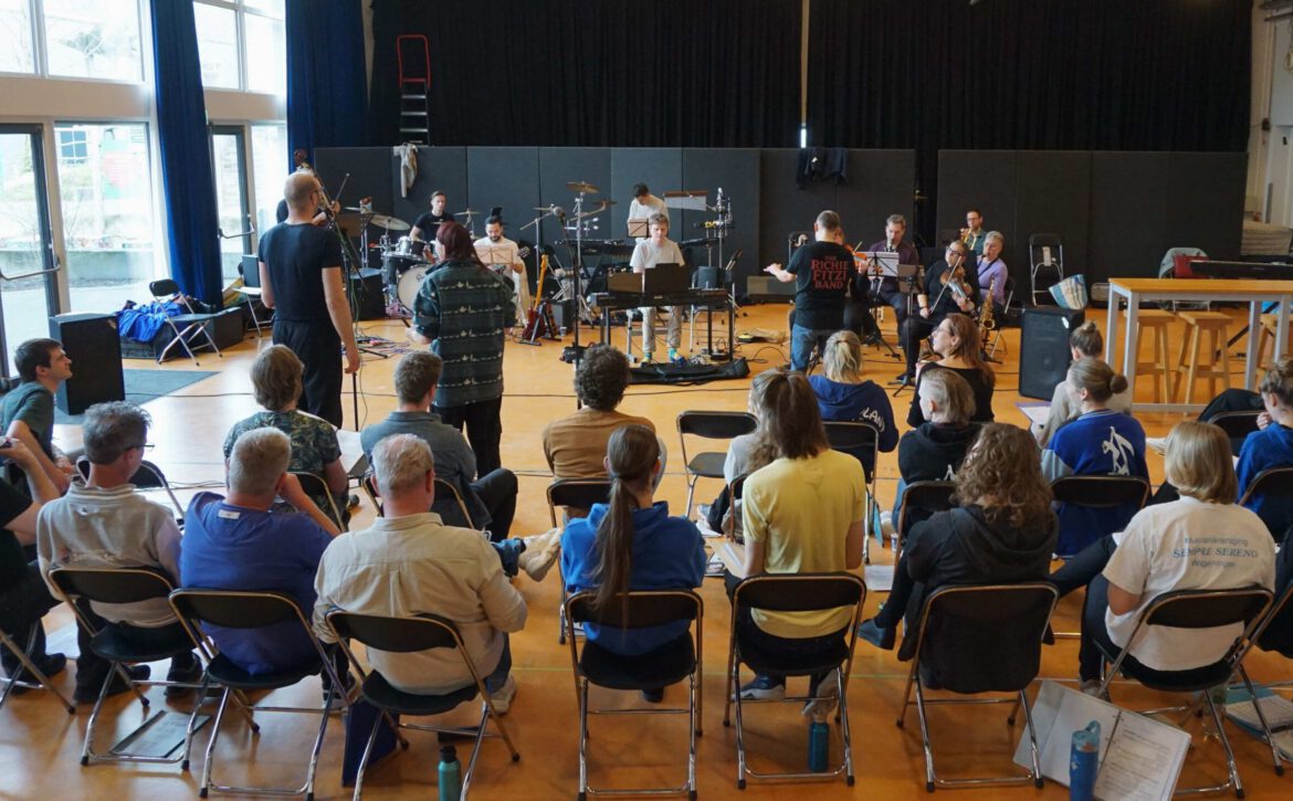 4. Jullie hebben nu al een aantal repetities mee mogen doen. Hoe is het om met zoveel andere mensen te repeteren?