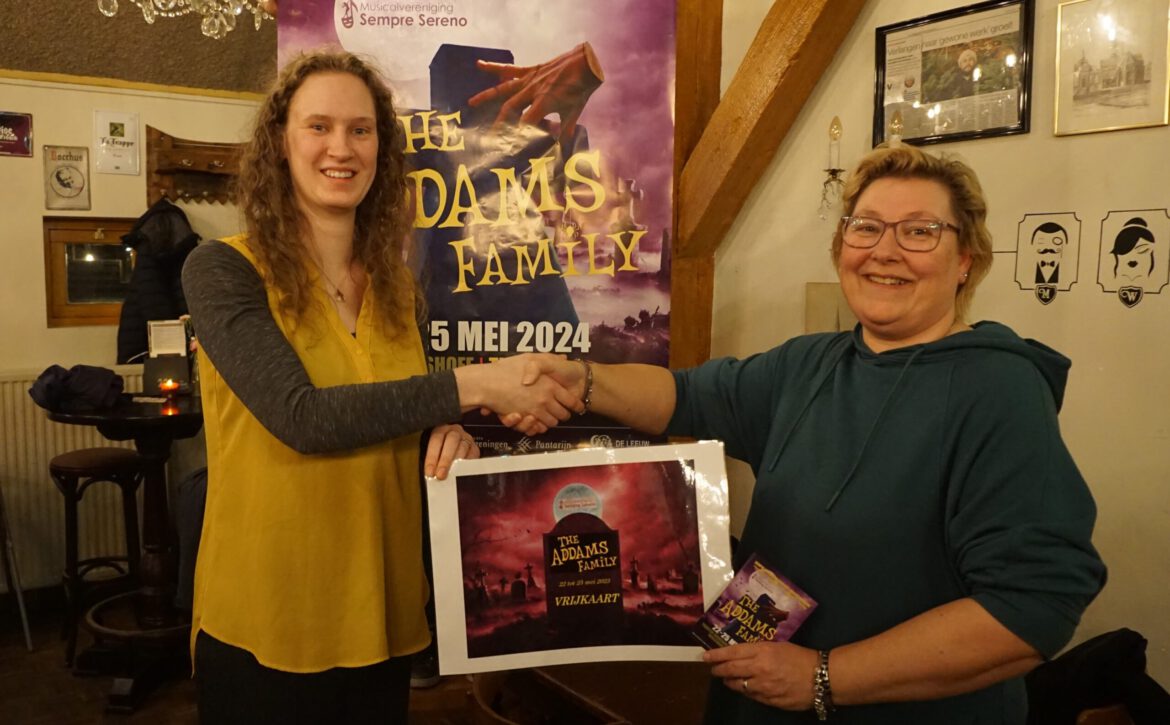 Wij hopen u op 22, 23, 24 of 25 mei te mogen begroeten bij de musical ‘The Addams Family’. De kaartverkoop start op 4 maart 2024 (voor in uw agenda). Op de hoogte blijven van onze productie? Schrijf u in voor onze nieuwsflits op www.sempresereno.nl of volgt ons via social media (Facebook, Instagram, X).
