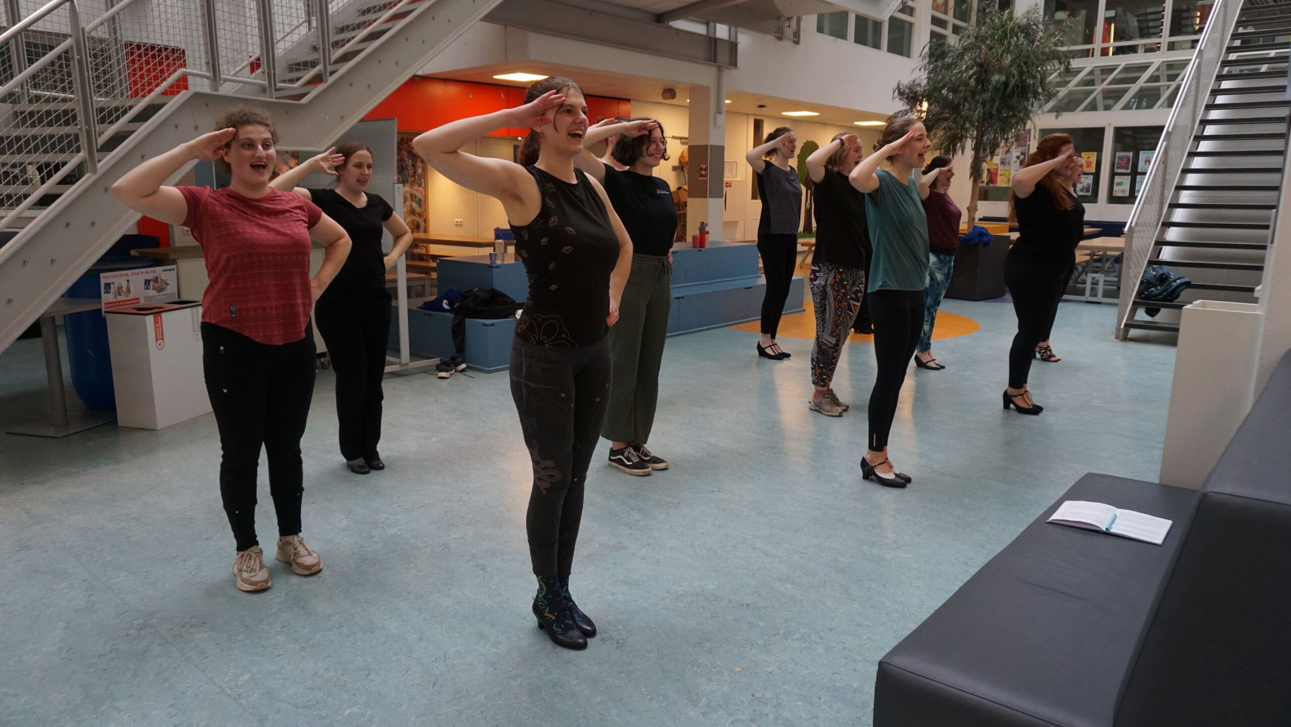 We begonnen het repetitieweekend op zaterdag met het oefenen van een logistiek zeer complexe scène, namelijk het circus! Alle acrobaten, eenwielers, en olifantenpoepscheppers hebben nu hun eigen cue en lopen elkaar niet meer in de weg. In de middag splitste de groep zich op. Door een deel van de groep werd er hard gewerkt aan de showgirldans. Het andere deel van de groep heeft meerdere nieuwe scènes gezet. Ook de reus heeft nog aan zijn danspasjes gewerkt. De zaterdag werd feestelijk afgesloten met een pizza in het centrum!