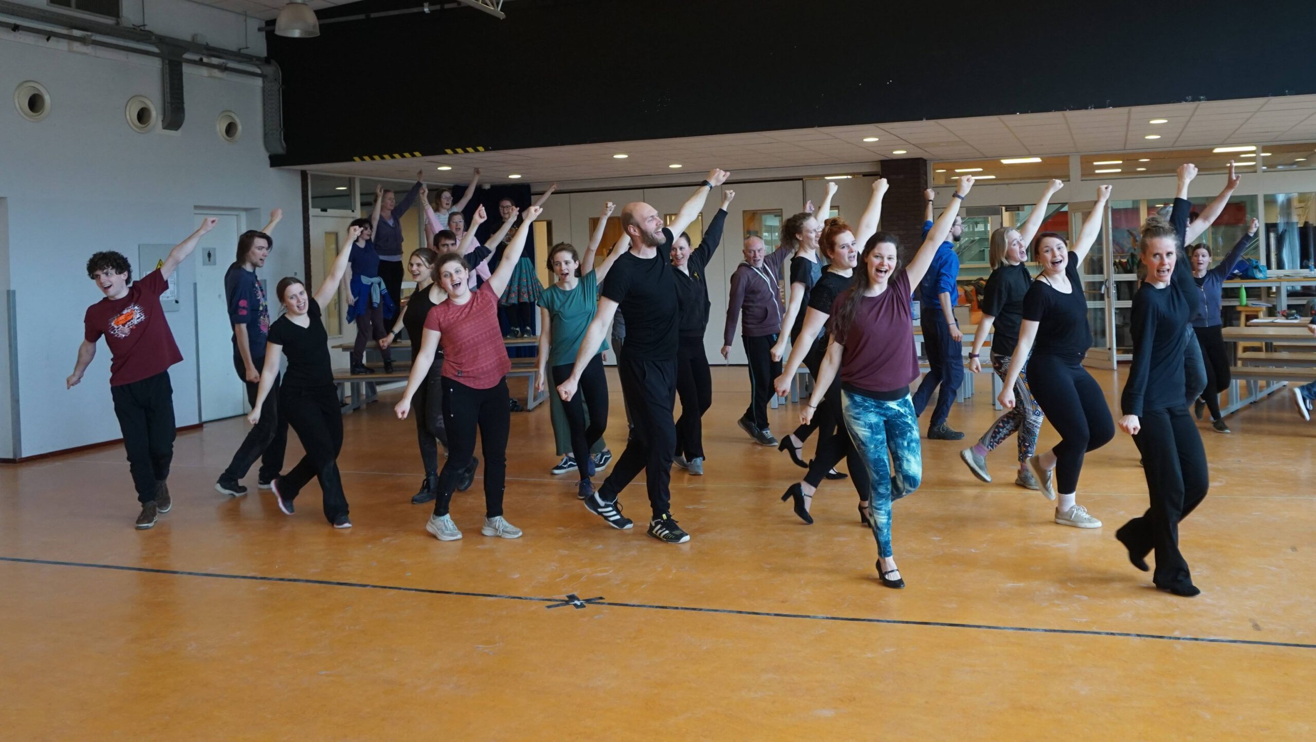 Zondagochtend begonnen we, zoals gebruikelijk in ons tweede repetitieweekend, met een sitzprobe. Dit houdt in dat het orkest voor het eerst alle nummers speelt gecombineerd met de zang van de cast. Wat klonk het al geweldig! In de middag stond de doorloop van de 1e akte gepland. Ontzettend gaaf om te zien hoe alles waar we de afgelopen maanden hard aan hebben gewerkt, nu allemaal samenkomt! Het was ook zeer nuttig, omdat bij de doorloop gewerkt kon worden aan de overgangen tussen scènes. Bovendien konden de leden alvast oefenen met het omkleden tussen de scènes door, aangezien iedereen zo’n 10 kostuums heeft dit seizoen!